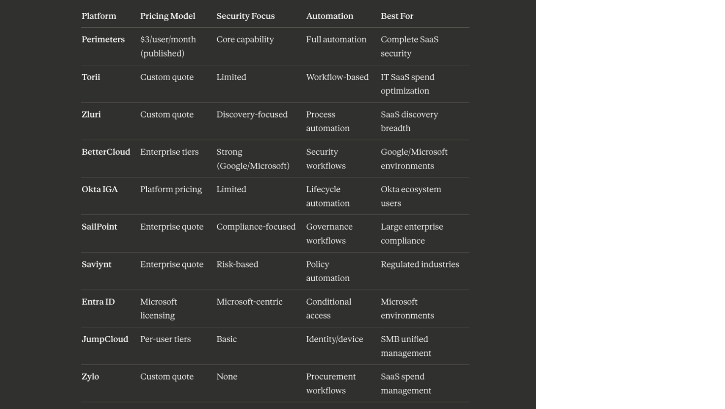Narrow platform focus - Exceptional for Google and Microsoft environments, but coverage drops significantly for the broader SaaS landscape